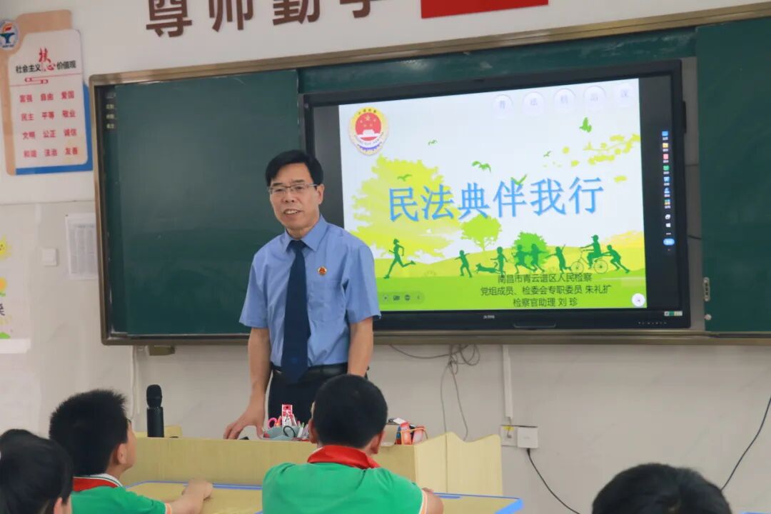 今年五月是我国第五个“民法典宣传月”,正值“六一”儿童节即将来临,青云谱区人民检察院党组成员、检委会专职委员朱礼扩及检察官助理刘珍带着一份特殊的礼物走进南师附小教育集团青云谱校区,他们以“童趣普法”为密码,将民法典的种子播撒进孩子们的心田,让法治教育化作节日最暖心的成长礼物。