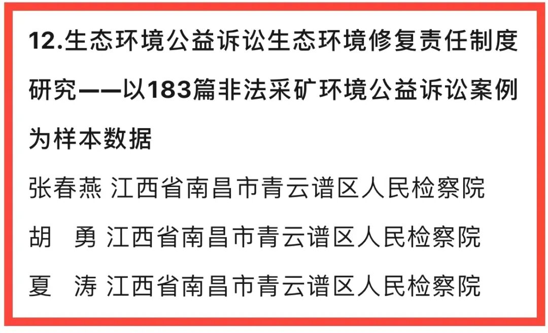 为推动贯彻落实习近平新时代中国特色社会主义思想,践行习近平生态文明思想、习近平法治思想,2024年3月至5月,《中国检察官》杂志社与广东省肇庆市人民检察院(广东省人民检察院公益诉讼检察研究基地)全国法学理论界及实务界开展“生态环境和资源保护公益诉讼检察实务研究”主题征文活动中,我院调研团队撰写的“生态环境公益诉讼生态环境修复责任制度研究——以183篇非法采矿环境公益诉讼案例为样本数据”的理论调研文章,喜获全国优秀奖!