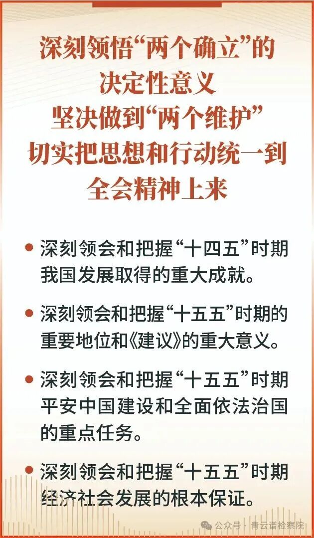 解读:党的二十届四中全会审议通过的《中共中央关于制定国民经济和社会发展第十五个五年规划的建议》(下称《建议》),着眼强国建设、民族复兴伟业,对未来五年发展作出顶层设计和战略擘画,是乘势而上、接续推进中国式现代化建设的又一次总动员、总部署。研讨班从深刻领会和把握“十四五”时期我国发展取得的重大成就、深刻领会和把握“十五五”时期的重要地位和《建议》的重大意义、深刻领会和把握“十五五”时期平安中国建设和全面依法治国的重点任务、深刻领会和把握“十五五”时期经济社会发展的根本保证四个方面提出明确要求。